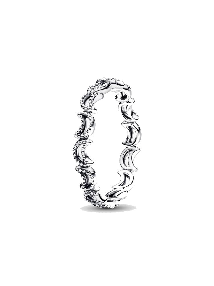 Scopri la magia del cielo notturno con il nostro anello Falce di Luna, un gioiello che cattura l'essenza del cosmo e la trasforma in pura eleganza. Realizzato in Argento Sterling 925, presenta una fila di lune collegate e finemente incastonate con sfere lucenti, simbolo di unità e armonia cosmica.