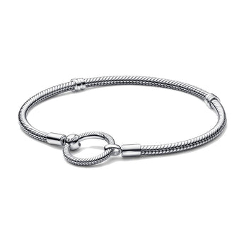 Realizzata in argento sterling 925, la nuova versione di questo amatissimo gioiello presenta l'iconico motivo a maglia snake di Pandora ed è completata da una chiusura rotonda. La chiusura può contenere fino a due pendenti e ruota per aggiungere un tocco di movimento dinamico.