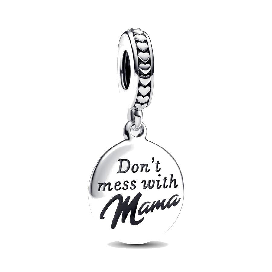 Esprimi il tuo amore per la mamma con il Charm Pendente "Don't Mess with Mama"! Realizzato in Argento Sterling 925, celebra la mamma con un tocco di umorismo. Inciso con "Don't mess with Mama" e un anello di congiunzione con cuori in rilievo, il retro può essere personalizzato. Regala un messaggio dal cuore alla mamma!