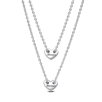 Prepara una sorpresa romantica con la Collana Cuori Divisibile. Realizzata in Argento Sterling 925, questa collana unisce due pendenti lucidi a forma di cuore con le parole "Always" e "Forever" scritte sopra. Il simbolo perfetto dell'amore eterno, i due pendenti scorrono sulla catena regolabile per esprimere la forza del tuo legame.