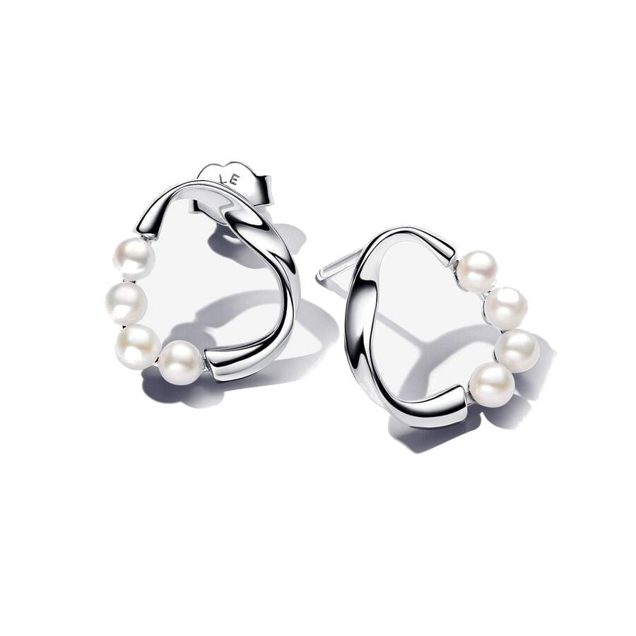 Orecchini Linea Sinuosa Circolare con Perle d'Acqua Dolce Coltivate