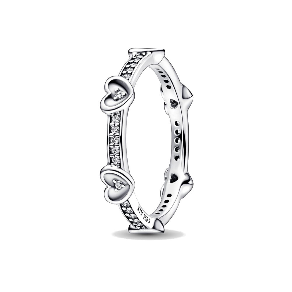Rifinito a mano e realizzato in Argento Sterling 925, il nuovo anello Cuori Splendenti è caratterizzato da una fila di cuori in rilievo, ognuno decorato da una pietra di zirconia cubica incolore con taglio brillante rotondo e collegato da un pavé scintillante.