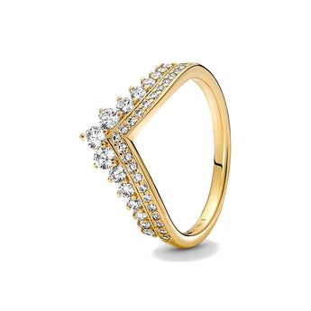 Anello a forma di tiara. Ispirato ai gioielli reali che hanno attraversato la storia, l’anello chevron con placcatura in oro 14k infonderà un’aura regale ai tuoi look di ogni giorno. Decorato da file di scintillanti pietre di zirconia cubica con incastonature classiche.