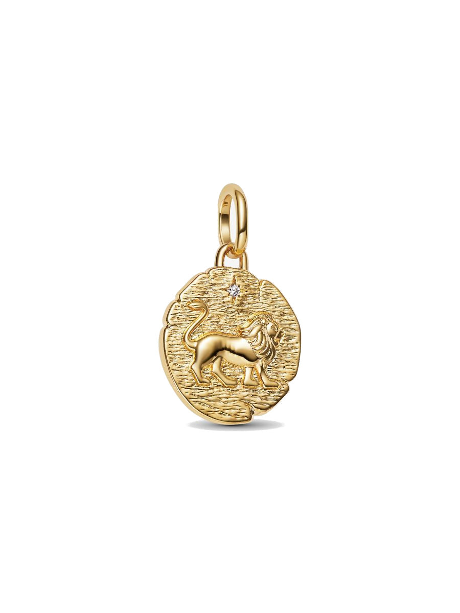 Charm Medallion Talisman Leone "Vita Veritas Virtus" Placcatura in Oro 14k