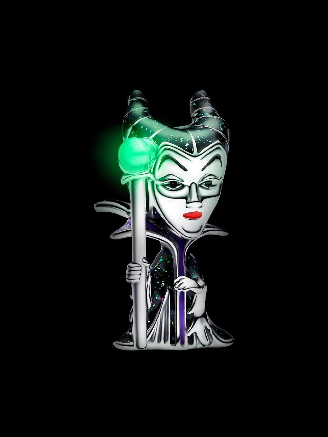 Malefica Disney, che domina il suo regno con la magia oscura. Il charm in argento sterling 925 la raffigura con smalto applicato a mano sul mantello e uno scettro che risplende al buio.
