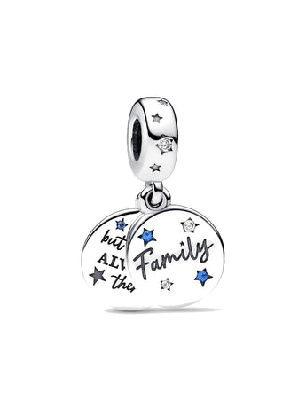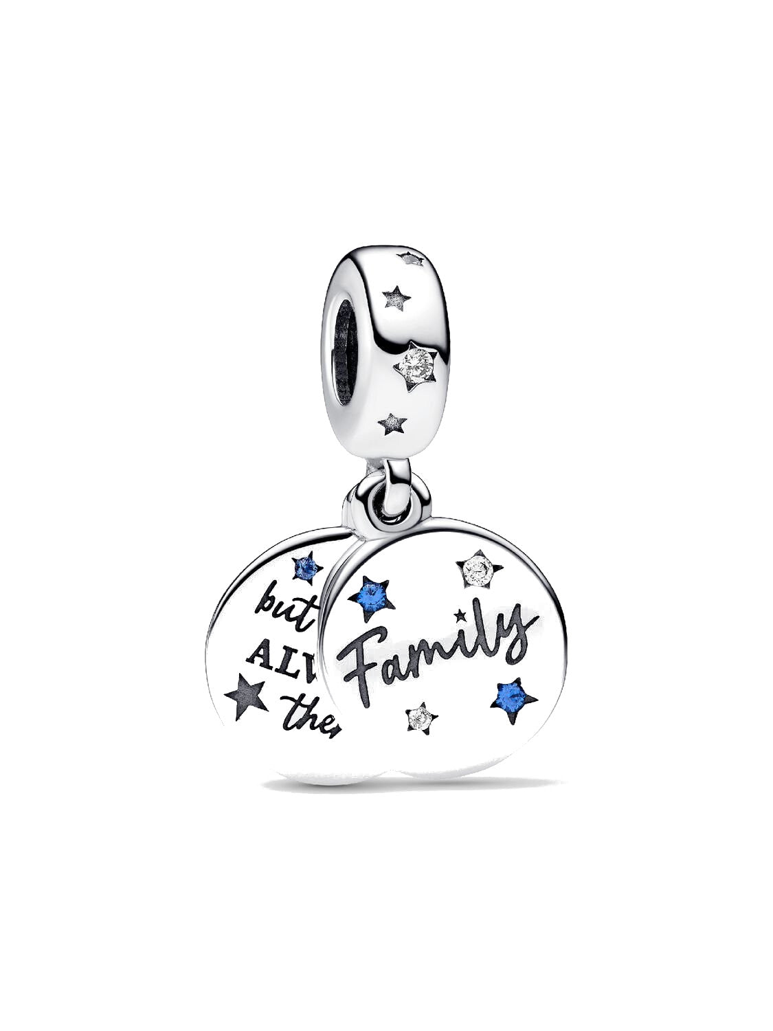 Porta sempre con te chi ami di più con il Charm Pendente Doppio Famiglia, un gioiello carico di significato ed emozione. Realizzato in Argento Sterling 925 e rifinito a mano dagli artigiani Pandora, questo charm presenta due dischi pendenti incisi con un messaggio profondo: