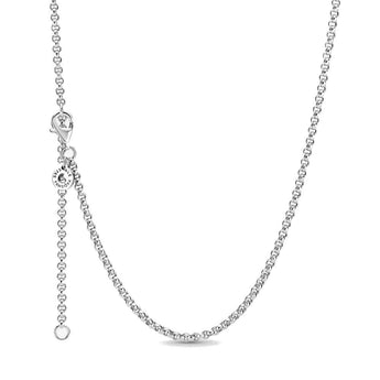 Rifinita a mano e realizzata in Argento Sterling 925, questa collana dalle linee semplici è regolabile su tre lunghezze diverse. Il gioiello può essere indossato solo con pendenti Pandora O di dimensioni piccole o medie.