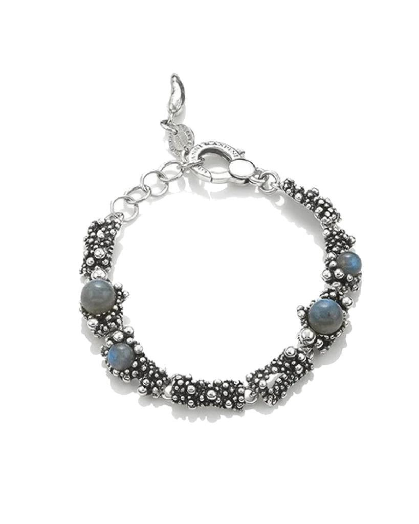 Elegante bracciale da donna della collezione Giovanni Raspini Perlage. Realizzato a mano in Italia, questo bracciale semi-rigido presenta un design unico ispirato alle bollicine di champagne e adornato da labradorite multicolor con riflessi cangianti. Regolabile in lunghezza con chiusura a moschettone, donerà un tocco di classe al tuo look. Peso 28 gr.