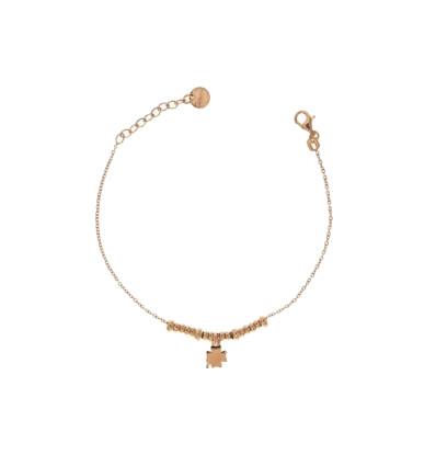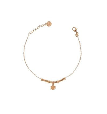 Bracciale Rue des Mille in argento 925 con placcatura in oro rosa, ciondolo a forma di quadrifoglio. Il bracciale è regolabile in lunghezza con una catenella al finale.