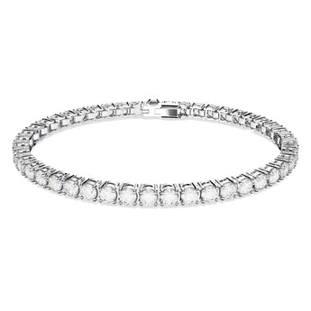 Braccialetto Swarovski Matrix Tennis Taglio tondo, Piccolo, Bianco, Placcato rodio misura XL