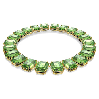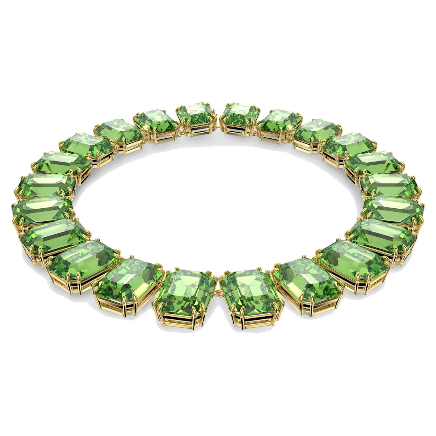 Questa vibrante collana girocollo è formata da una fila di cristalli taglio Octagon verdi e rifinita con una distintiva montatura placcata oro. Per aggiungere una prismatica cascata di colori al tuo look quotidiano, indossa questo divertente gioiello su tinte monocromatiche, per farlo splendere davvero. Parte della famiglia Millenia, la collana è firmata dal Direttore Creativo Giovanna Engelbert per la Collection I.