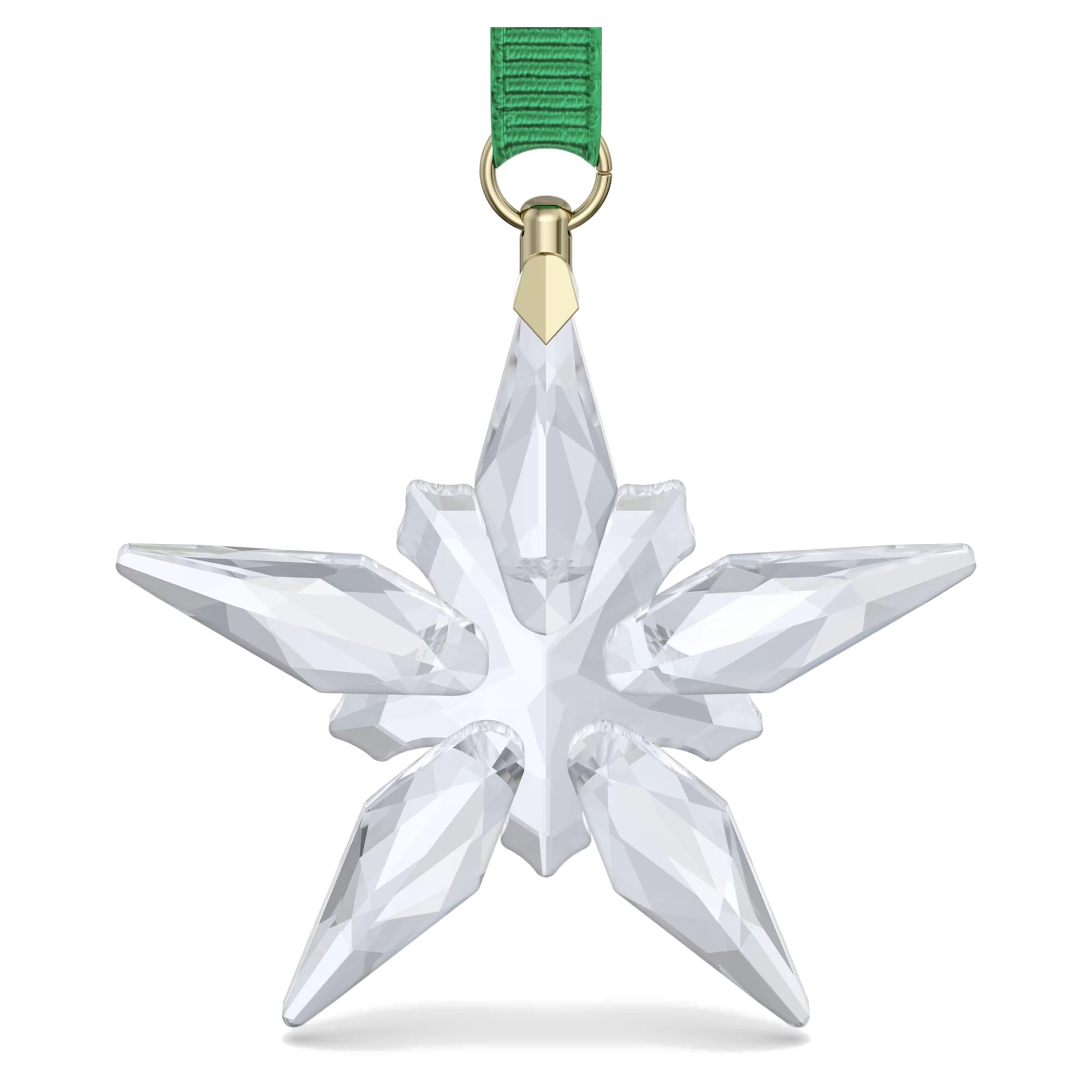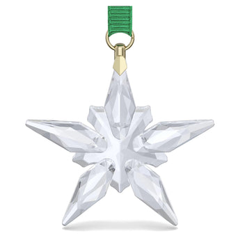 Appesa a un nastro in gros-grain verde con eleganti dettagli in oro champagne, questa decorazione è perfetta per impreziosire l'albero di Natale o come idea regalo sofisticata. Una creazione delicata e luminosa che renderà ancora più speciale ogni momento del periodo natalizio.
