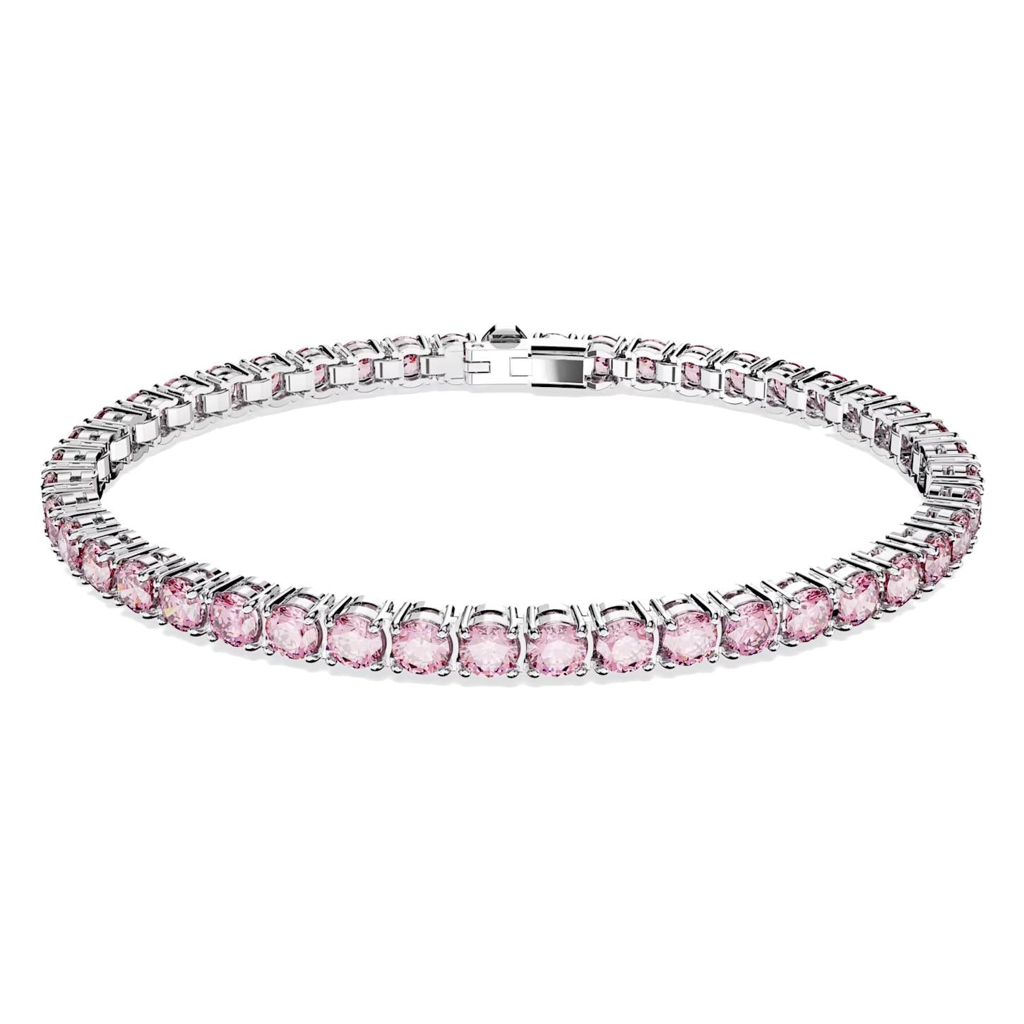 Braccialetto Swarovski Matrix Tennis Taglio tondo, Piccolo, Rosa, Placcato rodio (Misura M)