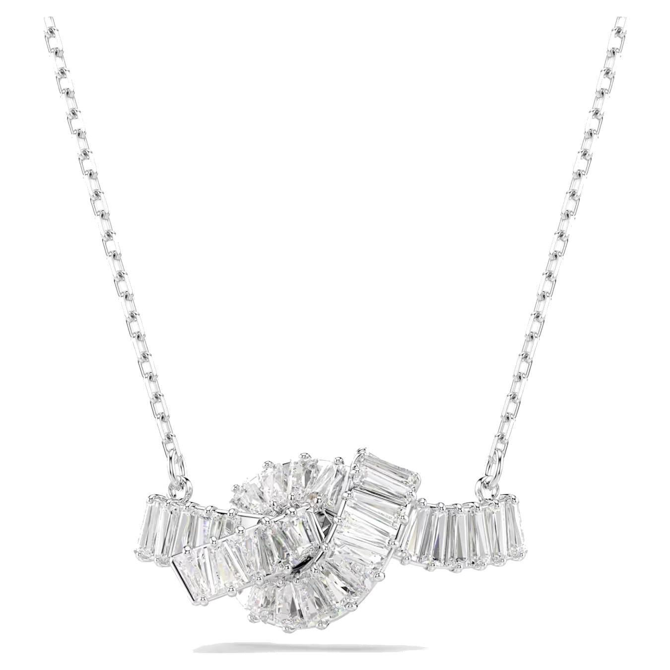 Pendente Matrix Taglio baguette, Nodo, Bianco, Placcato rodio
