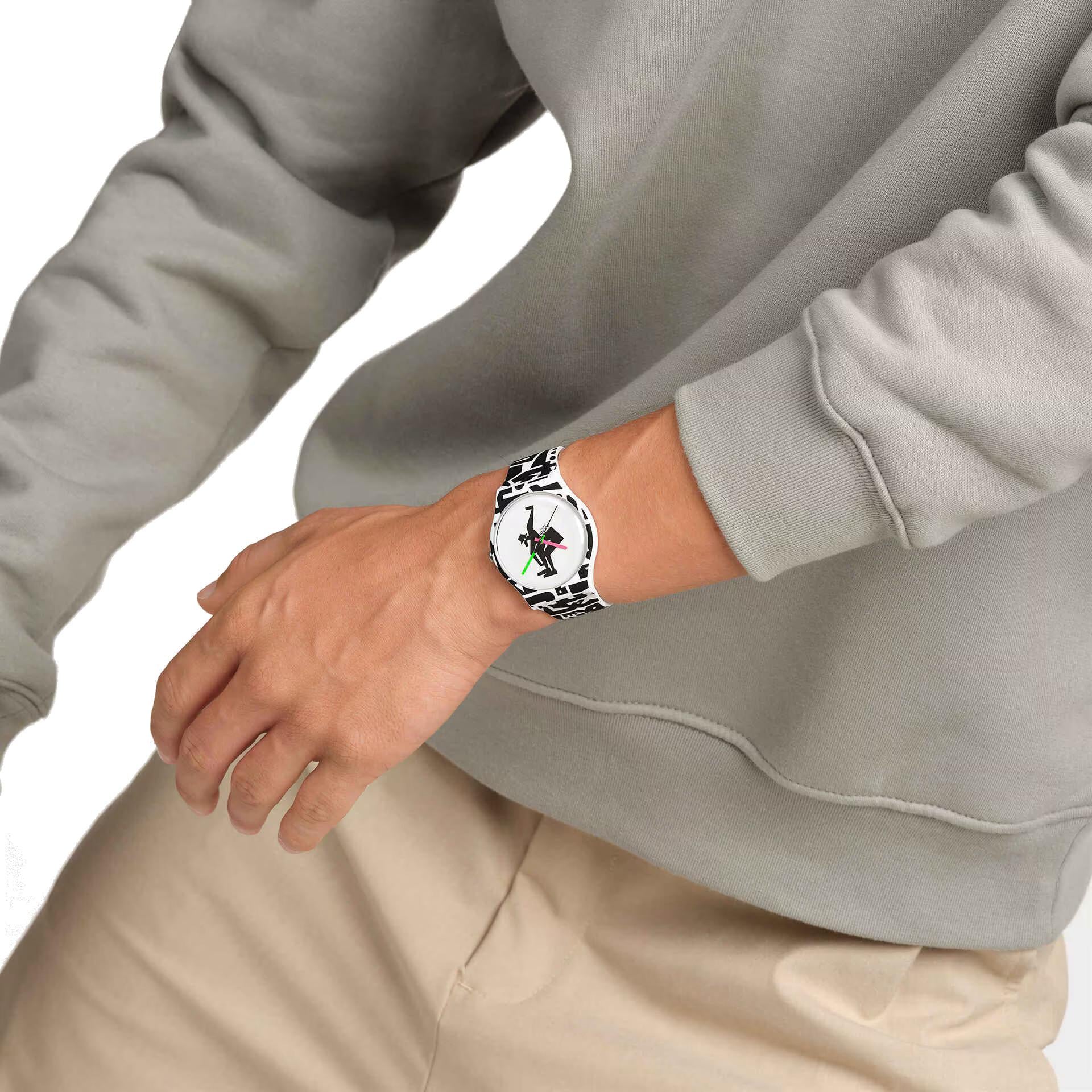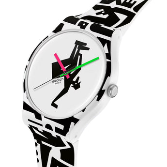 Creato in collaborazione con l'artista e grafico Grotesk, questo orologio dal design audace e giocoso è perfetto per chi ama distinguersi con stile e creatività.