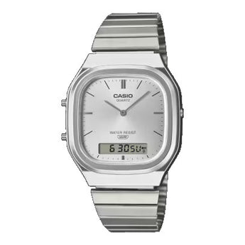 Con il suo doppio display analogico-digitale, l'AQ-240E fonde il fascino retrò delle linee vintage con un'eleganza attuale e pulita. La cassa dalle forme morbide e il quadrante leggermente rettangolare creano un equilibrio armonioso, valorizzato da delicate curve metalliche che donano uno stile sobrio e sofisticato.