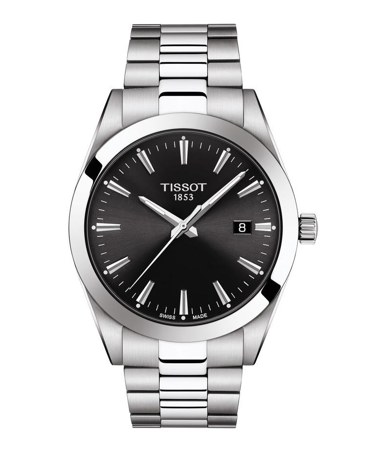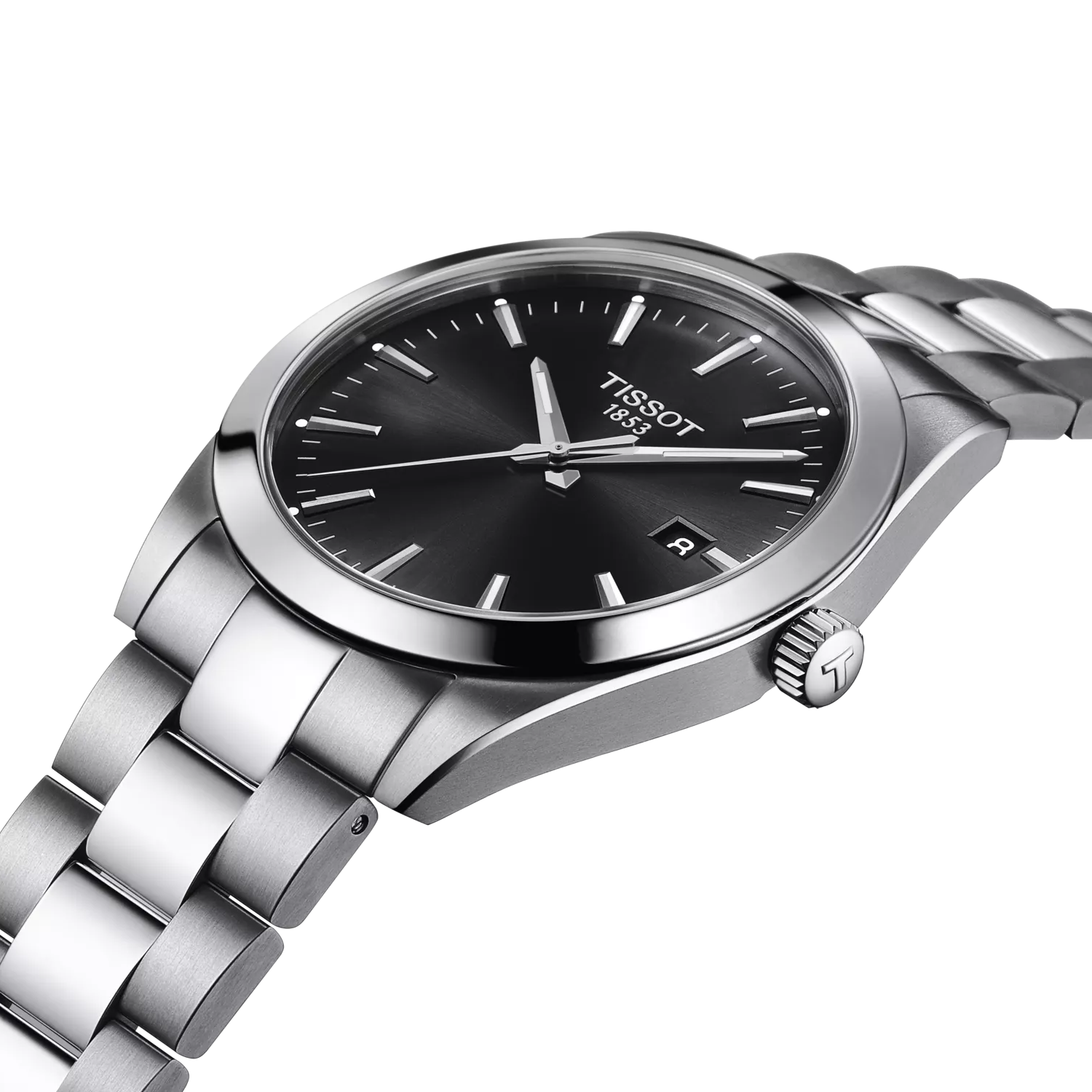 Orologio Tissot Gentleman Con Cassa in Acciaio, Bracciale in Acciaio, Quadrante Nero, Datario e Vetro Zaffiro.