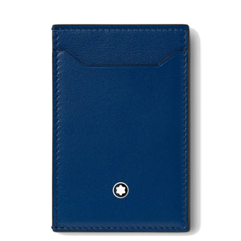 La custodia Meisterstück con tre aperture per carte di credito è realizzata in una nuova tipologia di pelle blu estremamente lucida. Il nuovo design geometrico, caratterizzato da diverse aperture per carte di credito, accentua il carattere funzionale del modello.