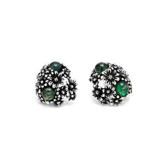 Orecchini Raspini in Argento 925, decorato con delicate micro margherite e Agata verde.