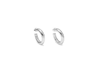 Essenziali e contemporanei, questi eleganti orecchini portano una luce speciale al volto grazie alla texture unica dell'argento martellato a mano, una firma distintiva di Giovanni Raspini. La superficie lavorata conferisce movimento e riflessi luminosi, per un effetto sofisticato e moderno.