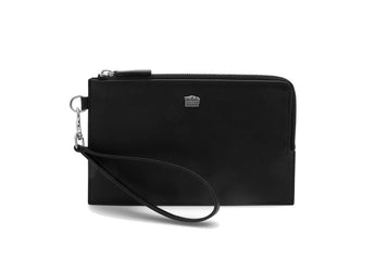 Questa pouch in pelle di vitello Nero è la scelta perfetta per chi cerca spazio e stile. Con un unico grande scomparto e 3 tasche per carte di credito, è ideale per contenere tutti gli oggetti importanti. Il robusto laccio da polso staccabile e la cerniera garantiscono la sicurezza. L'impareggiabile qualità artigianale del brand Giovanni Raspini è evidente in ogni dettaglio, incluso il logo in Argento 925.