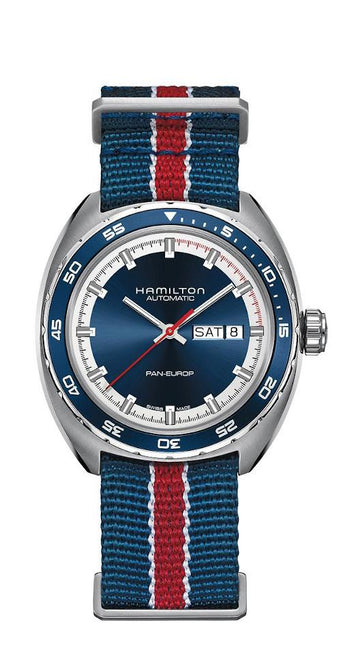 Modello dallo stile Retrò che incarna il puro Stile da Viaggio Americano: dentro la sua scatola è disponibile anche un secondo Cinturino in pelle traforato. Equipaggiato col movimento Hamilton H-30 con 80 ore di Riserva di Carica.