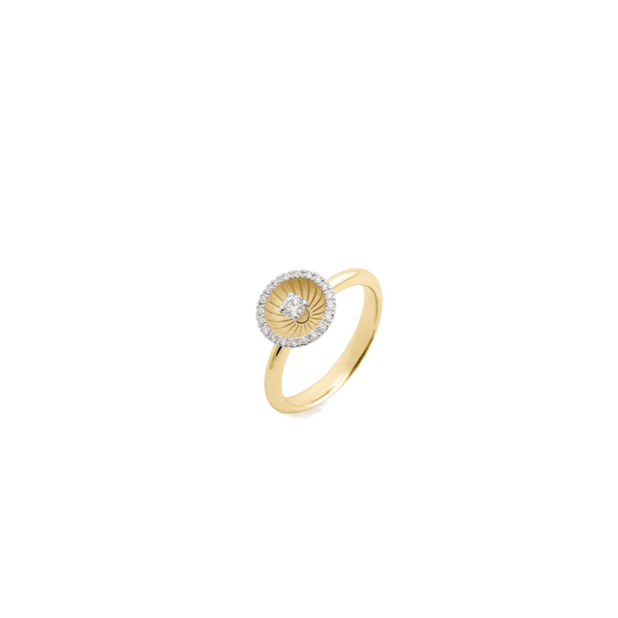 Scopri l'eleganza luminosa dell'Anello Serie Mystar in Oro Yellow Sunrise 18Kt con Diamanti, un gioiello raffinato pensato per chi ama distinguersi con classe e discrezione.