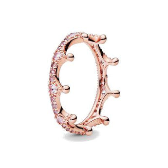 Anello in esclusiva lega metallica ricoperta in oro 14Kt. e Cubic Zirconia. Anello ispirato alle corone reali, realizzato con maestria artigianale, le sue pietre di colore rosa donano un alone di principesca magia a chi lo indossa. Perfetto da regalare alla propria amata.