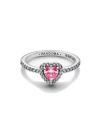 Anello Cuore in Rilievo Rosa. Realizzato in Argento Sterling 925, presenta una pietra rosa in rilievo a forma di cuore, circondata da pavé.
