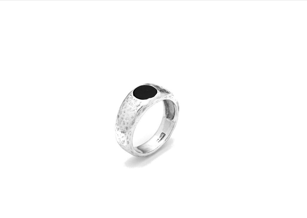 Anello Iconico in Argento Martellato e Onice Nera – Fatto a Mano in Italia