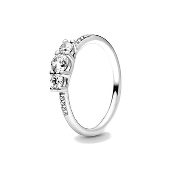 Anello in Argento Sterling 925 e Cubic Zirconia. Anello con tre grandi pietre incastonate al centro e rifinito ai lati con altre piccole cubic zirconia, per uno stile classico e senza tempo.