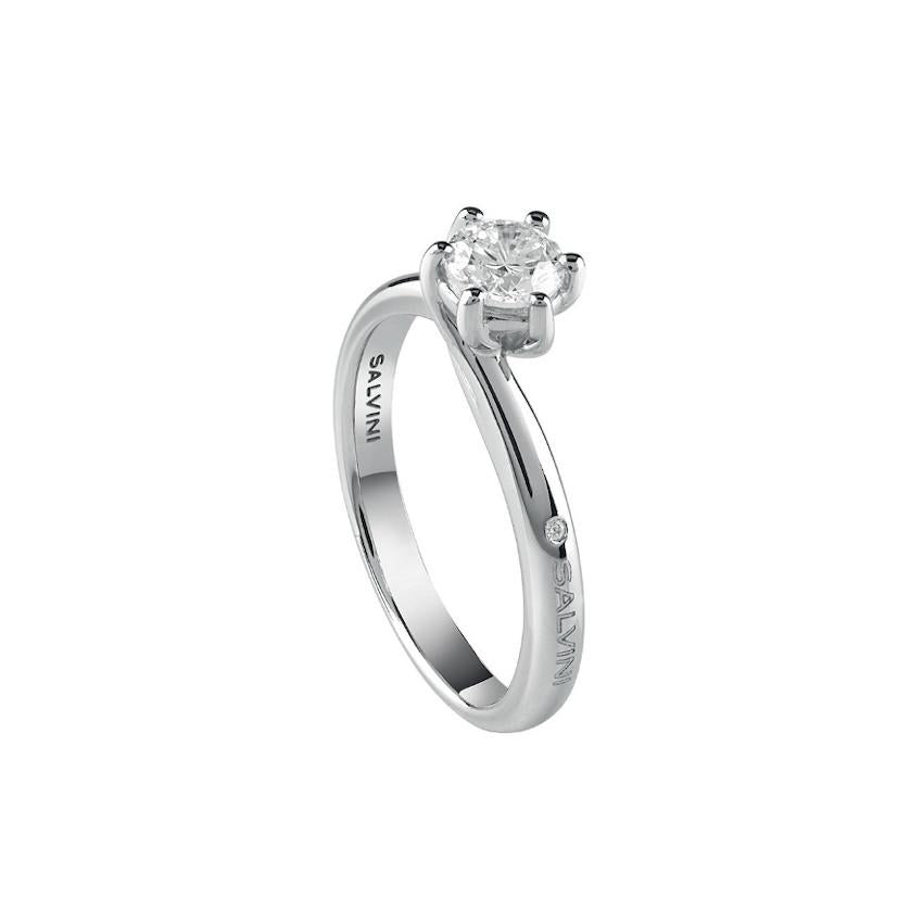 Anello solitario Salvini modello Lavinia in oro bianco 18 kt con diamante taglio brillante, caratura 0,16 colore G, qualità VS.