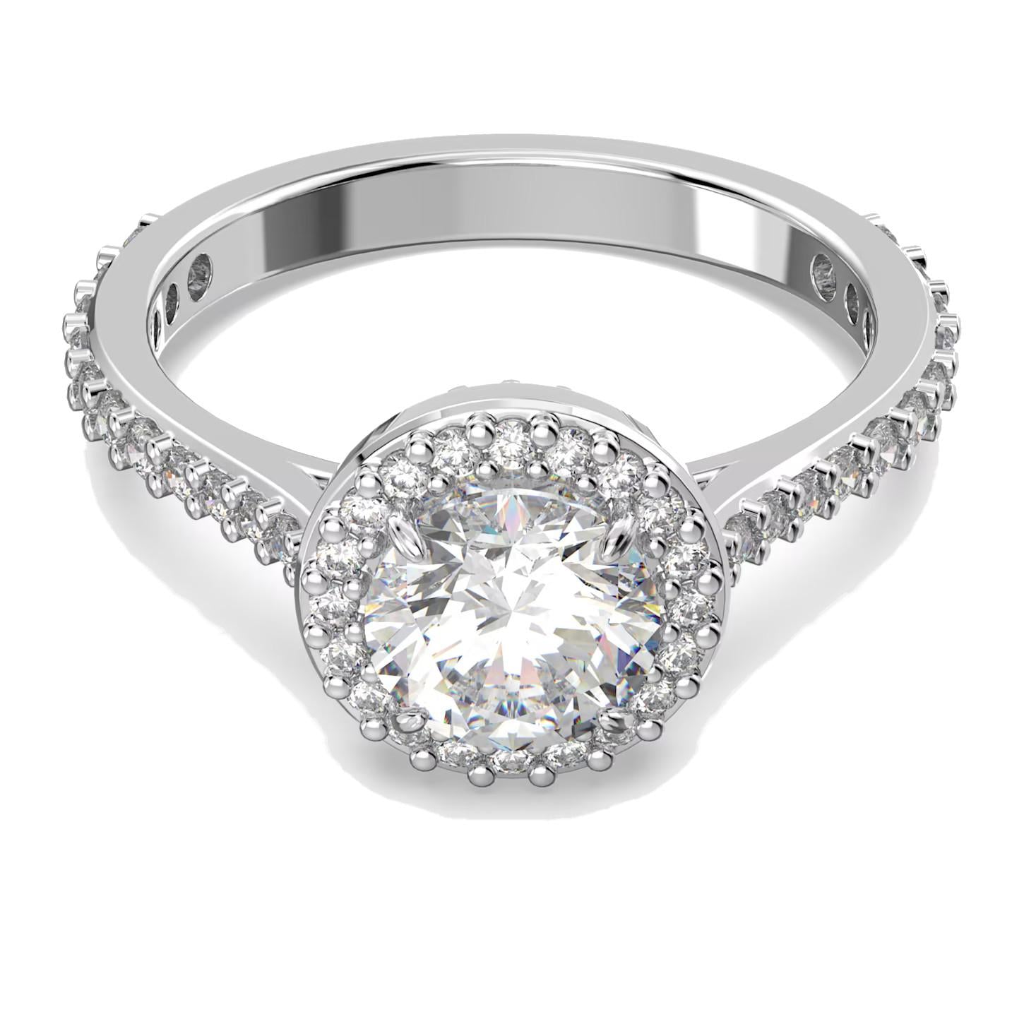 Anello Swarovski cocktail Constella Taglio tondo, Pavé, Bianco, Placcato rodio (Misura 50)