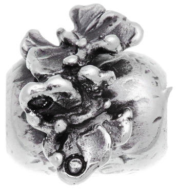 Bead Giovanni Raspini, referenza 09986, realizzato in argento 925 con lavorazione lucida e brunita che rappresenta un barilotto con sopra delle farfalle. Il peso è 1,6 gr. Fatto a mano in Italia