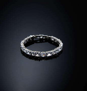 Bracciale Chiara Ferragni Brand modello tennis della collezione princess, con placcatura al rodio e pietre bianche taglio quadrato, ovale, rotondo e smeraldo.