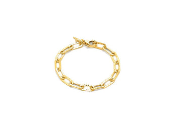 Questo bracciale, in argento dorato, nasce da una catena artigianale martellata a mano. Grazie alla texture particolarissima, Hope risplende quasi di luce propria. Un gioiello materico e luminoso, per uno stile elegantissimo, da indossare sempre.