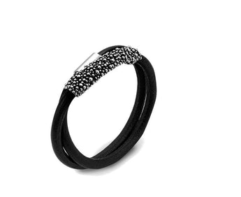 Bracciale Giovanni Raspini, realizzato in argento 925 e cuoio nero. La chiusura è a calamita. La lunghezza è 38,5cm.