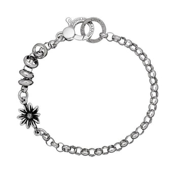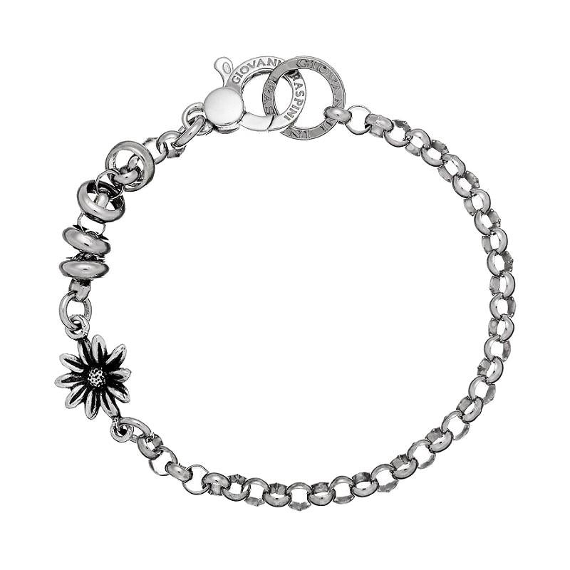 Bracciale Giovanni Raspini, realizzato in argento 925 maglia rolò con ciondolo a margherita. La lunghezza è 20 cm con chiusura a moschettone.