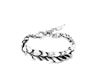 Bracciale Giovanni Raspini modello skin, realizzato in argento 925. Disegno a foglie. Chiusura a moschettone.