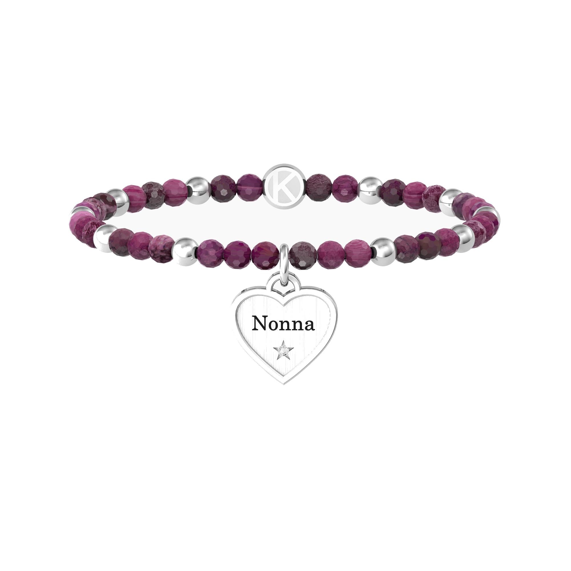 Bracciale Kidult nonna con agata fucsia e ciondolo cuore