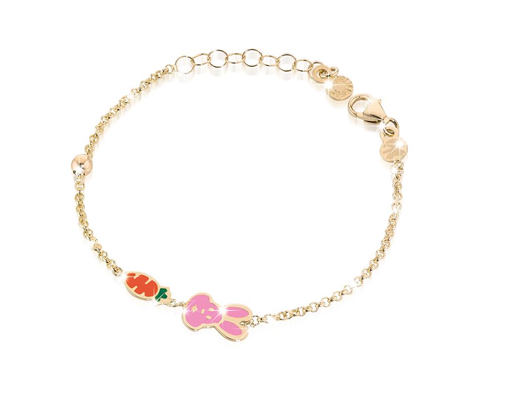 Bracciale oro giallo carota e coniglietto con smalto colorato