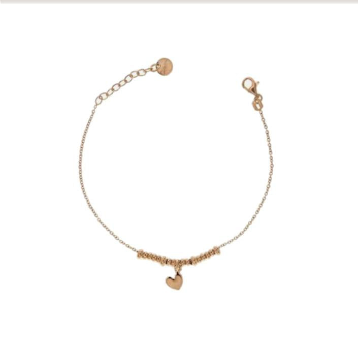 Bracciale Rue des Mille in argento 925 placcato oro rosa, ciondolo con cuore bombato. La lunghezza del bracciale è regolabile da 15 a 18 Cm.
