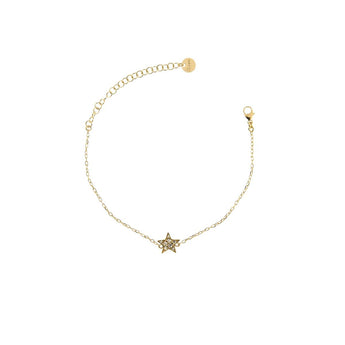 Bracciale Rue des mille, in argento 925 con placcatura in oro giallo, maglia a catena con centrale stella con zirconi.