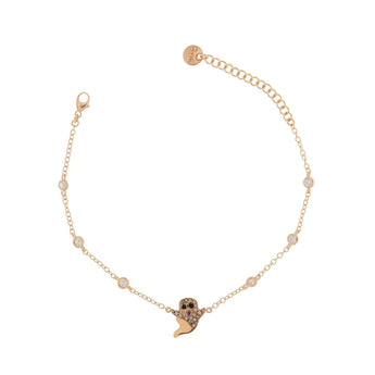Il bracciale ha come centrale un ciondolo a forma di fantasmino con incassate delle pietre che lo rendono scintillante.
