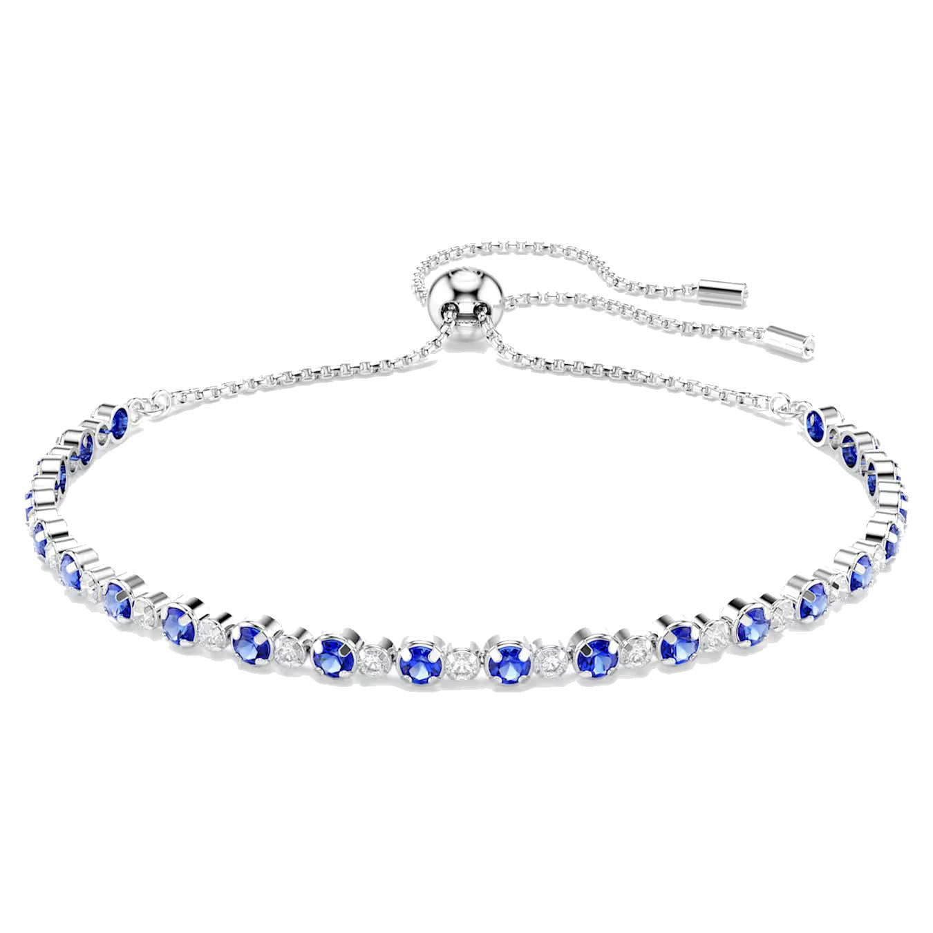 Bracciale Swarovski Tennis Matrix Tagli arrotondati misti, Blu, Placcato rodio