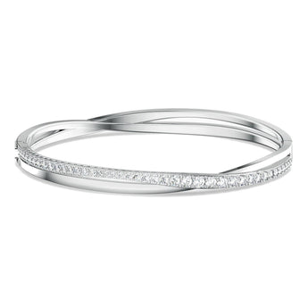 Questo splendido bangle Swarovski sfoggia un’eleganza intramontabile e discreta in una moderna interpretazione del trend delle spirali. Una brillante linea di pietre bianche scintillanti segue il delicato profilo curvo del bangle, aggiungendo radiosità al design. Trendy e raffinato, questo bangle completa i tuoi look da tutti i giorni con un tocco brillante.