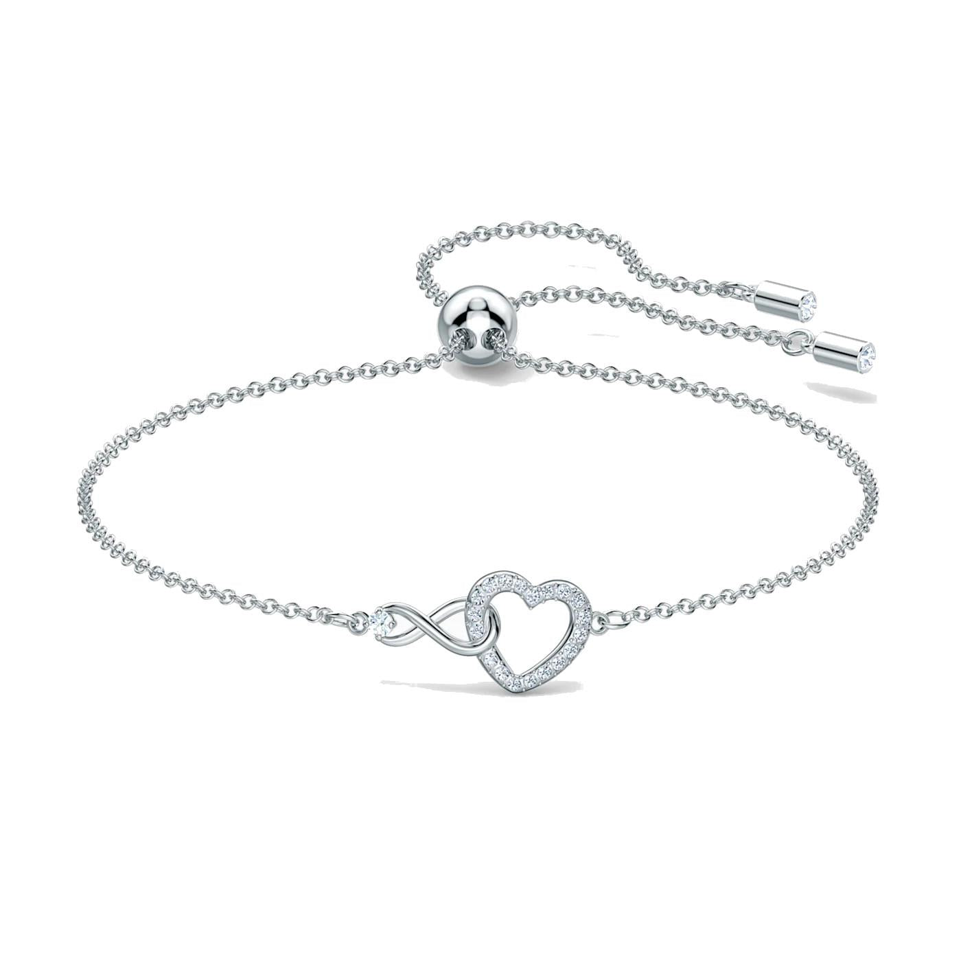 Braccialetto Swarovski Infinity Heart, bianco, placcato rodio