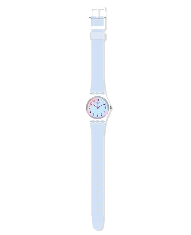 CASUAL BLUE (LK396) ha un look raffinato, con un maestoso vetro Swatch Solar Spectrum perfettamente abbinato alla tinta blu del cinturino trasparente.