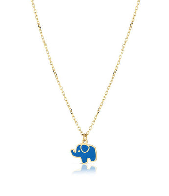 Collana in oro giallo 9kt con ciondolo a forma di elefantino in smalto blu. La collana è regolabile in lunghezza da 38cm a 40cm.