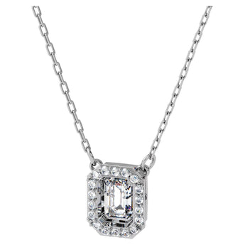 Progettata per assumere una strepitosa forma ottagonale, questa collana ciondolo diventerà uno degli accessori più utilizzati del tuo guardaroba. Una delicata catena placcata rodio trattiene una pietra taglio a Step trasparente che si muove mentre la indossi ed è incorniciata da pietre taglio brilliant più piccole. Infinitamente versatile, indossala con una t-shirt bianca per trasmettere sottilmente un messaggio, oppure portala a strati con altre collane, per un look più spettacolare. Parte della famiglia Millenia, la collana è firmata dal Direttore Creativo Giovanna Engelbert per la Collection I.